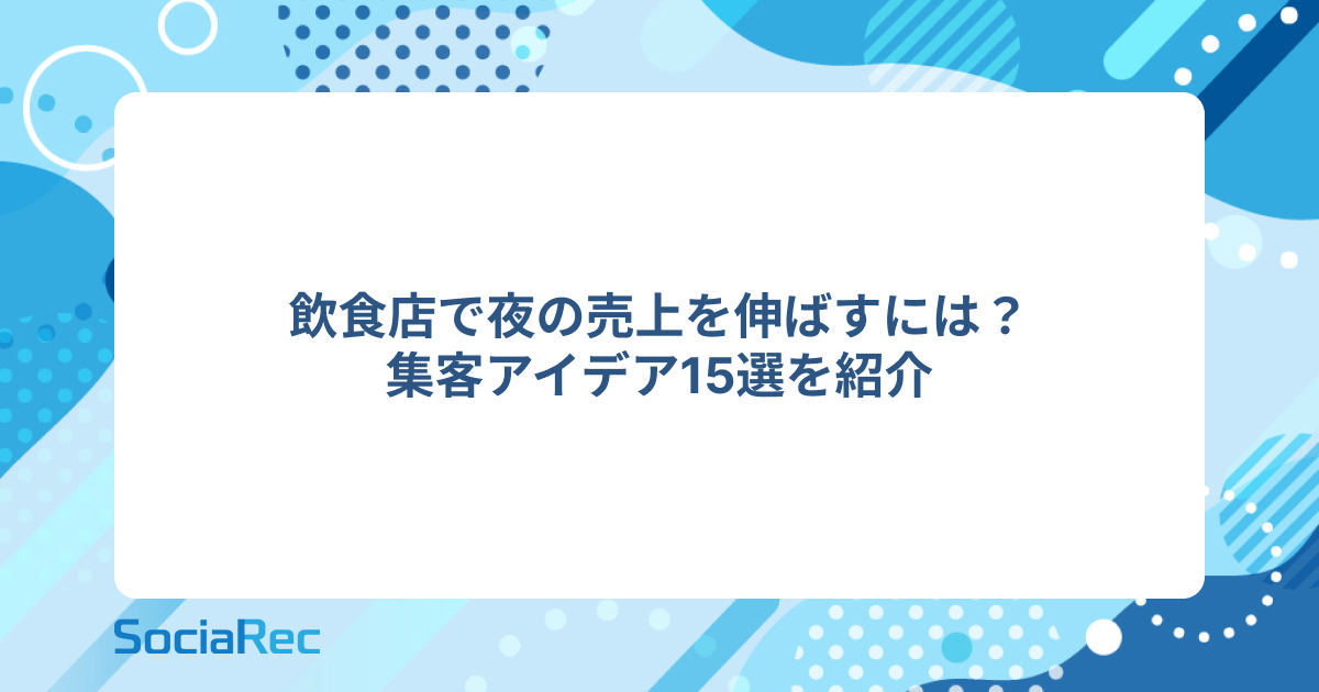 飲食店の集客を成功させたいなら、SNSに特化した集客支援サービス「SociaRec」にお任せください。