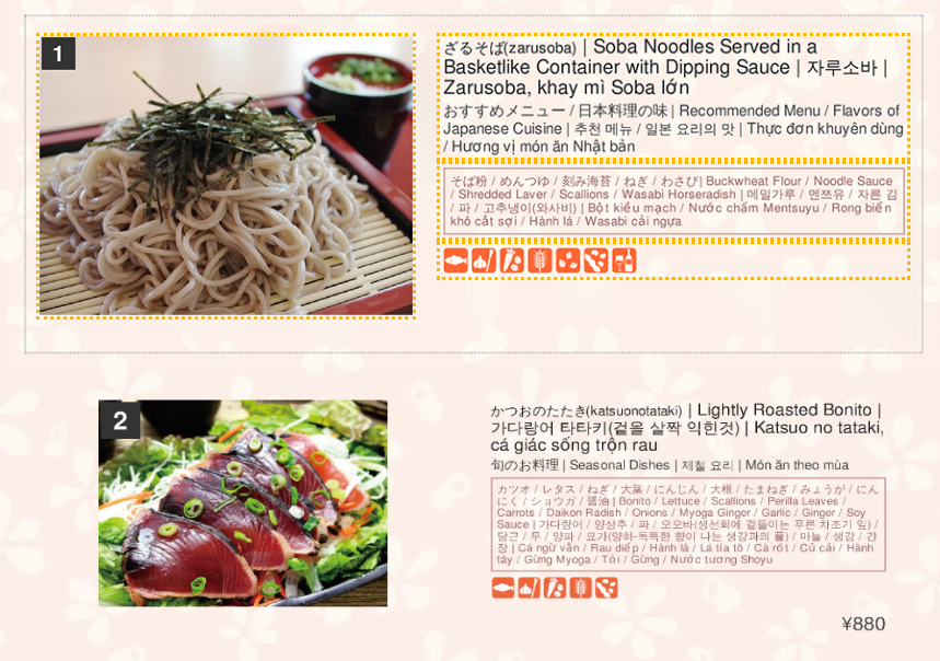 アレルゲン情報も各言語で明記すれば、食事制限のあるお客様にも配慮した安全な食環境を提供できるでしょう。